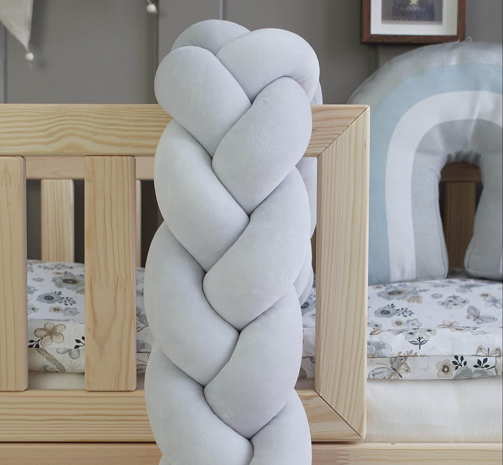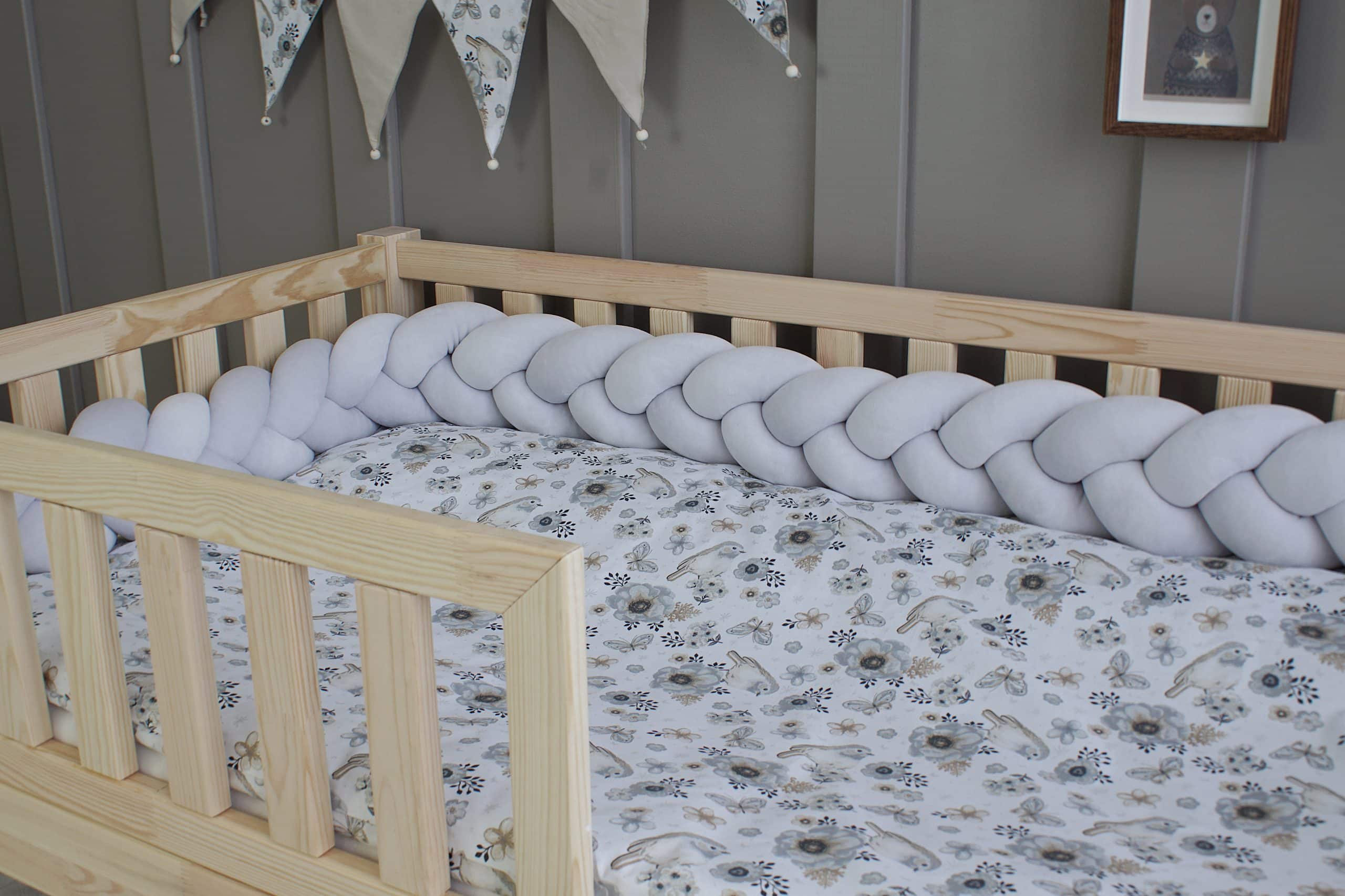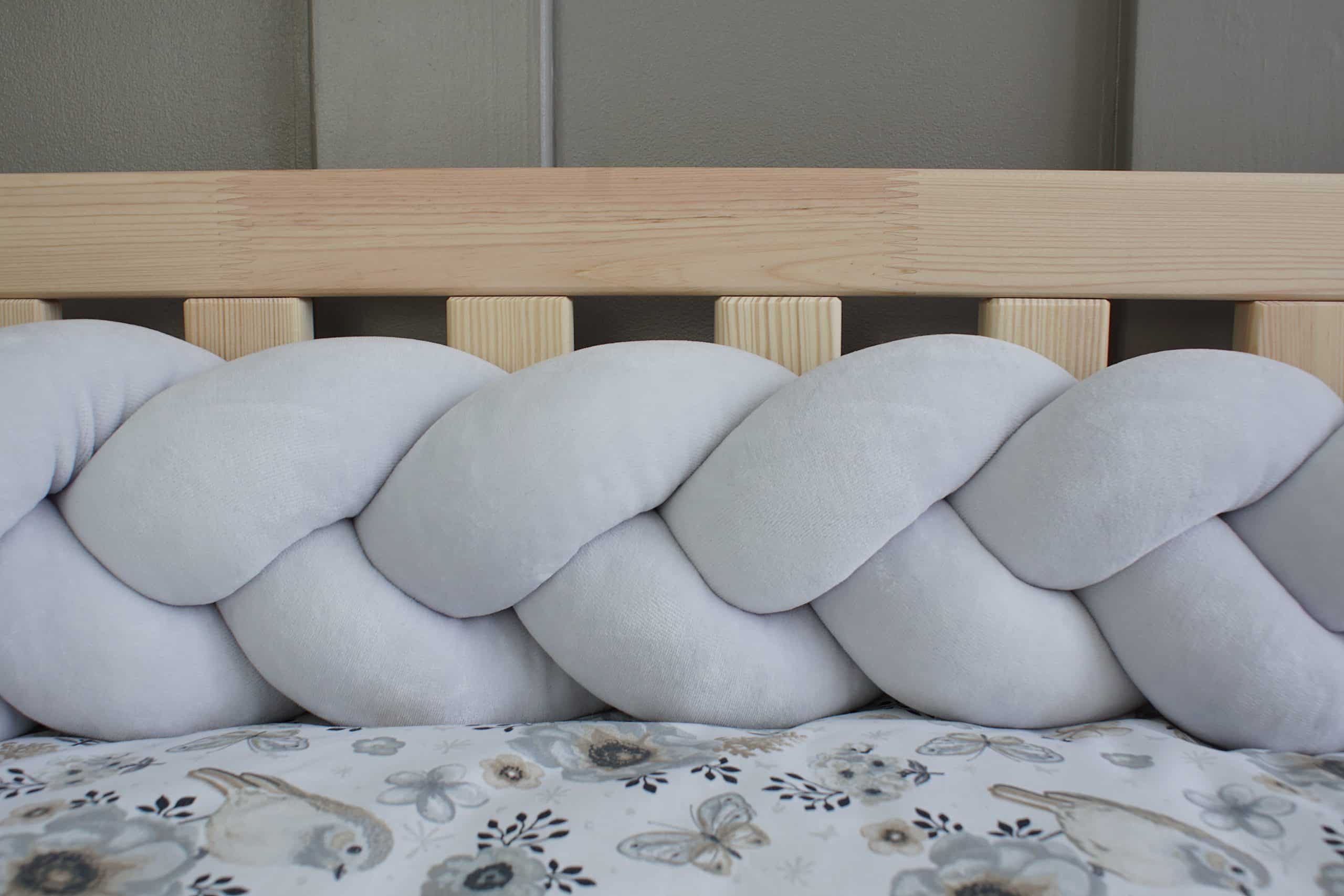De zorgvuldige ontwerp is een van zijn grote voordelen. Gevuld met zachte en hypoallergene siliconen microbeads, combineert het 96% hoogwaardig katoen (150g) met 4% elastaan. Het is verrijkt met kleurrijke linten die een stevige bevestiging aan het kinderbedje garanderen, waardoor ongewenste verplaatsingen van de bumper worden voorkomen. Elke bedbumper heeft een breedte van 6cm, een hoogte van 15cm (met een mogelijke afwijking van +/- 10%) en kan aangepast worden aan de gewenste lengte van de klant (binnen een marge van +/- 10%).