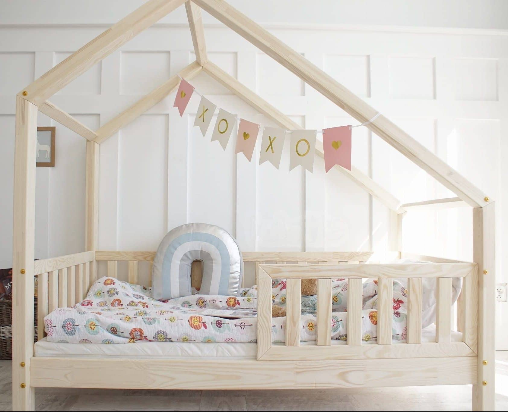 Om een gezonde omgeving voor kinderen te garanderen, gebruikt Petite Maisonnette natuurlijk hout en geurloze verf op waterbasis bij de productie van haar bedden. Deze aanpak elimineert de chemische dampen die vaak geassocieerd worden met traditionele verf, en zorgt voor zuivere lucht in de slaapkamer van uw kind. Uw kind kan rustig slapen, gewiegd door de natuurlijke, geruststellende aroma’s van thuis. Deze keuze onderstreept ons streven naar duurzaamheid en respect voor het milieu, en biedt een veilige en milieuvriendelijke slaapruimte.