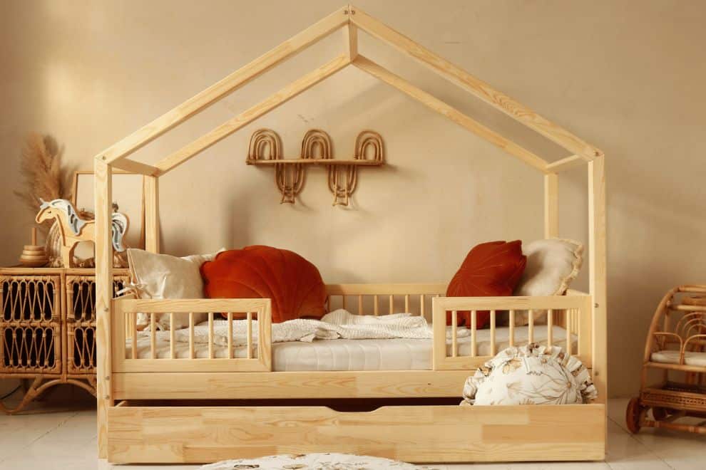 Om een gezonde omgeving voor kinderen te garanderen, gebruikt Petite Maisonnette natuurlijk hout en geurloze verf op waterbasis bij de productie van haar bedden. Deze aanpak elimineert de chemische dampen die vaak geassocieerd worden met traditionele verf, en zorgt voor zuivere lucht in de slaapkamer van uw kind. Uw kind kan rustig slapen, gewiegd door de natuurlijke, geruststellende aroma’s van thuis. Deze keuze onderstreept ons streven naar duurzaamheid en respect voor het milieu, en biedt een veilige en milieuvriendelijke slaapruimte.