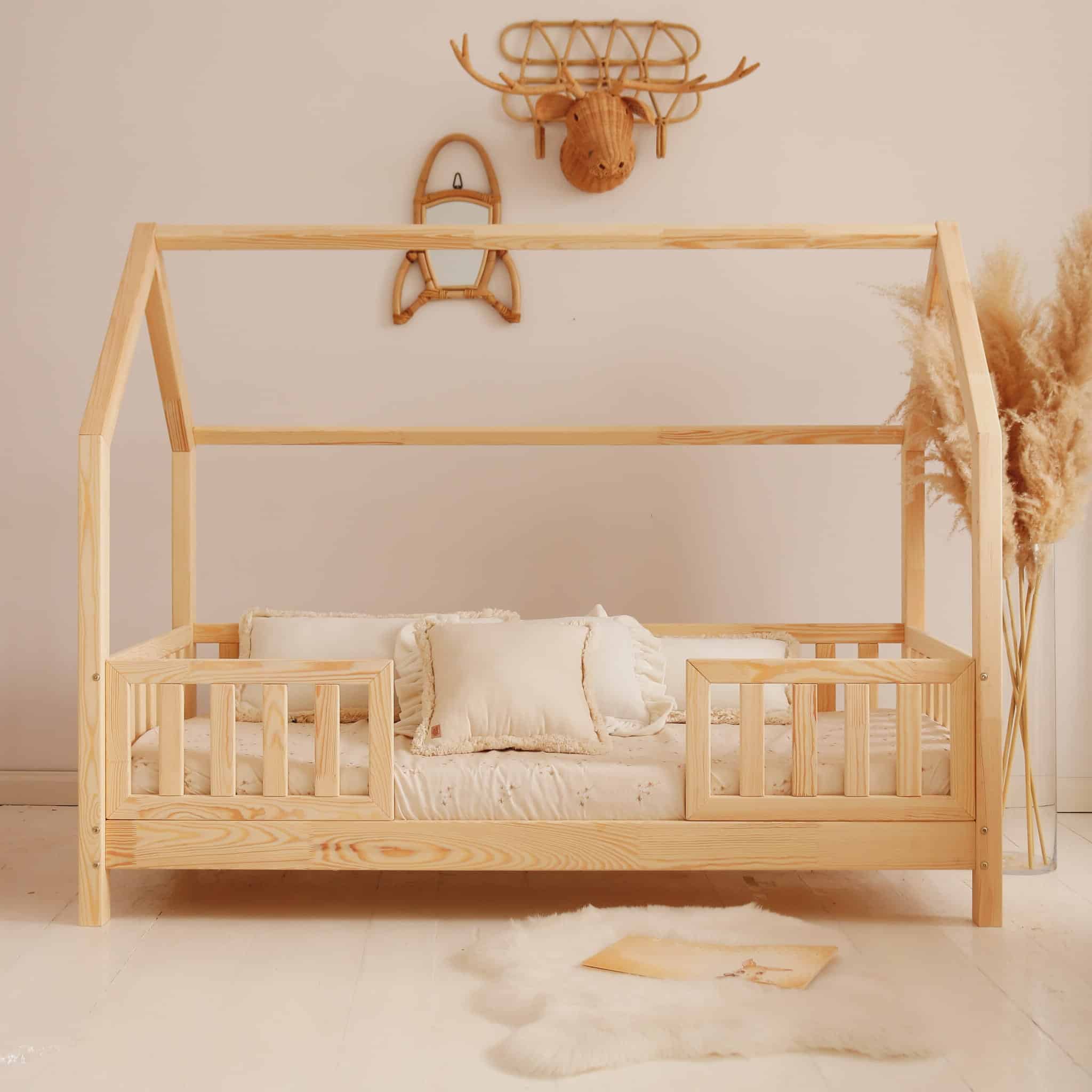 Het Bedhuisje Oslo met uitvalbeveiliging en centrale toegang is ontworpen om de overgang van uw kind naar een meer onafhankelijke slaapruimte te vergemakkelijken. De structuur in de vorm van een klein huisje creëert een veilige cocon die de verbeelding prikkelt en tegelijkertijd de zelfstandigheid van het kind bevordert.