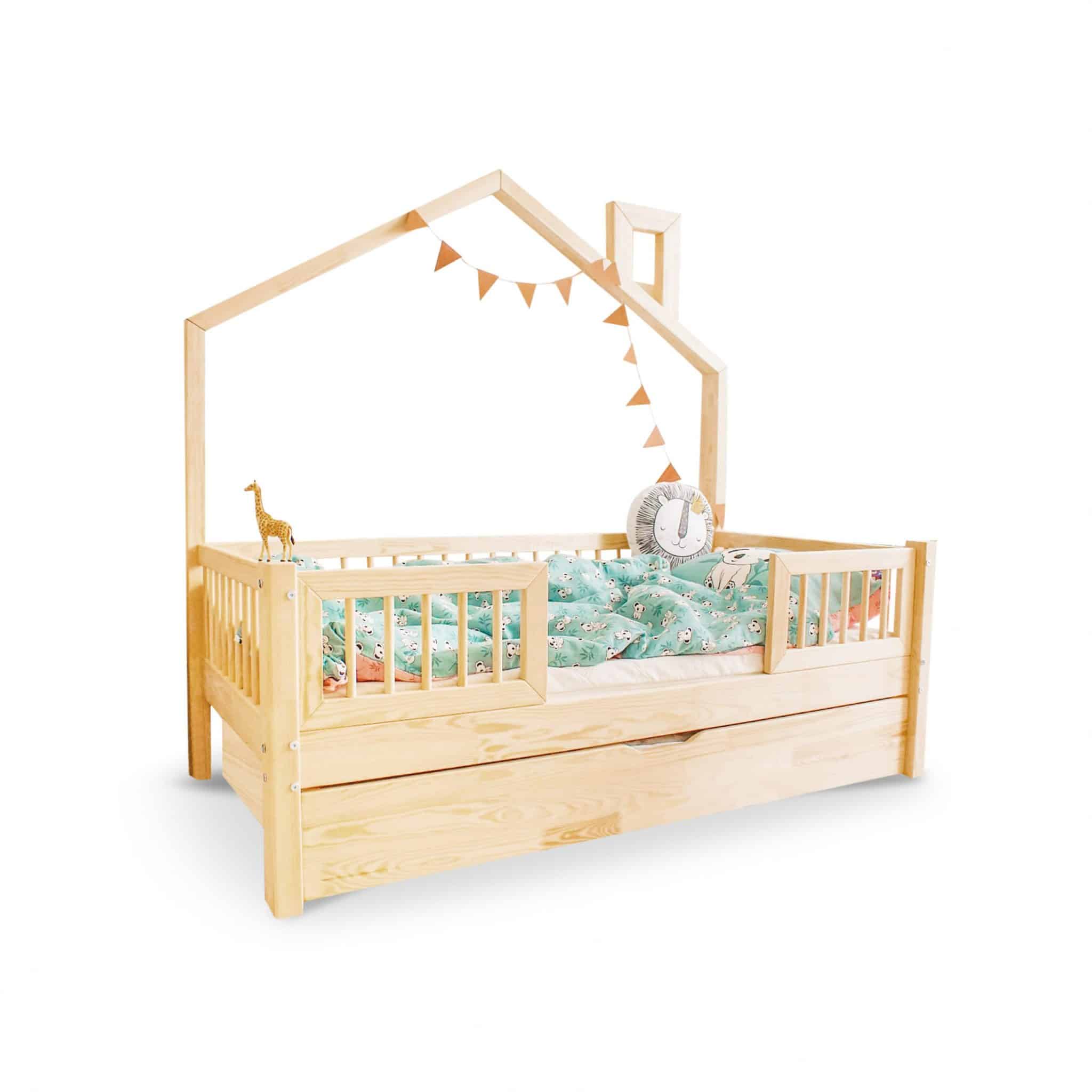 Het Bedhuisje Zoé met lade en centrale toegang biedt een unieke ruimte voor rust en spel. Deze ingenieuze structuur in de vorm van een klein huisje met een ingang in het midden bevordert de onafhankelijkheid van uw kind terwijl het zijn verbeelding stimuleert. Het is de perfecte omgeving waarin dromen en avonturen tot leven komen, wat de creativiteit en zelfstandigheid van uw kind versterkt.