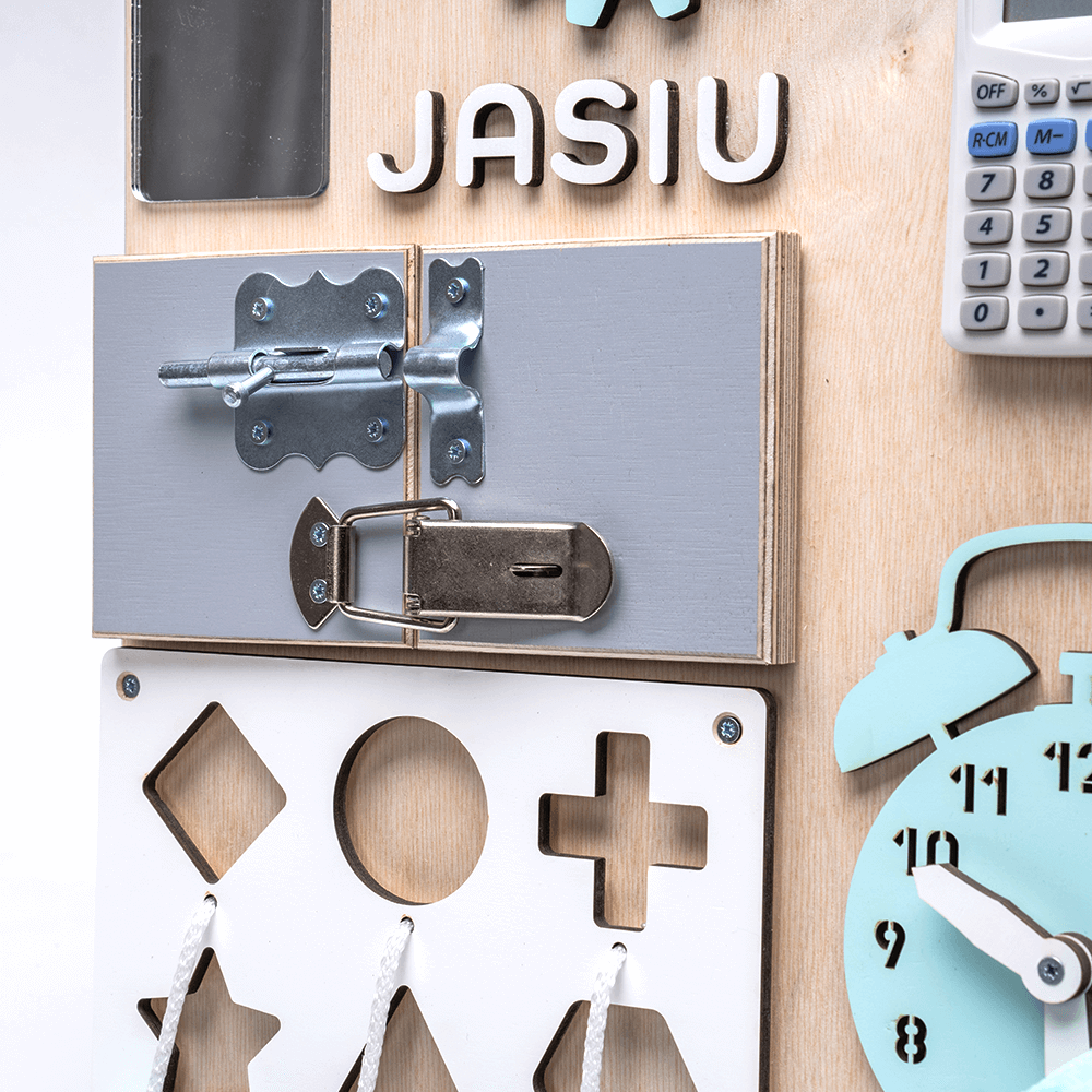 Handgemaakt van hout, dit activiteitenbord heeft een elegante en tijdloze uitstraling, perfect voor de kinderkamer. De ingebouwde sloten, belletjes, buizen, ramen, knoppen en andere accessoires stimuleren de zintuiglijke ontwikkeling en fijne motoriek van uw kind.