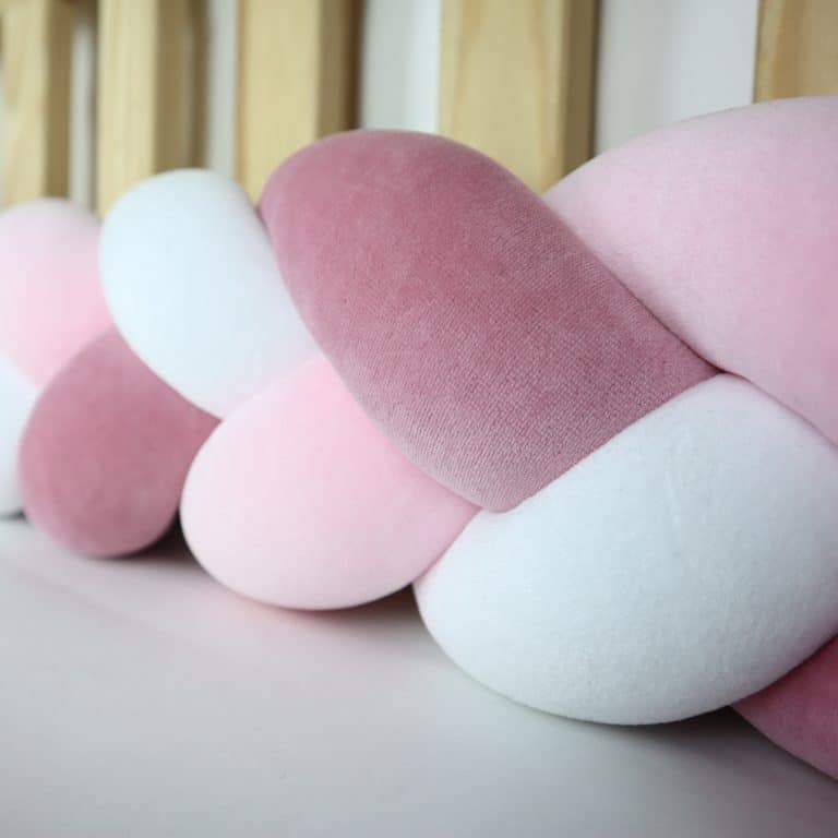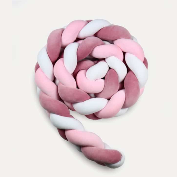 Gevlochten bedbumper – Roze Wit Roze