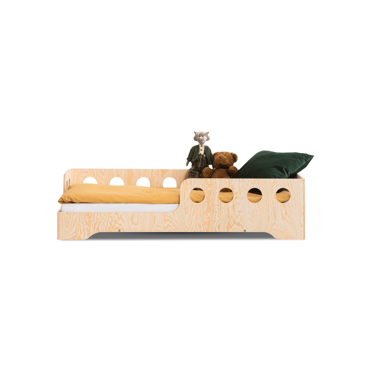 Onze bedden zijn ontworpen als speelplaats voor verbeelding, met een stevigheid die gemakkelijk het gewicht van een volwassene en een kind kan dragen. Ze creëren een ideale ruimte voor het delen van nachtelijke leesmomenten. Deze momenten van samenzijn, wanneer ouders en kinderen samen de werelden van avonturen en dromen verkennen, versterken de familiebanden. Ze zijn veel meer dan alleen een bed, ze bieden een toevluchtsoord voor creativiteit en geborgenheid, helpen onvergetelijke herinneringen te creëren en stimuleren de verbeelding van de jongste leden van het gezin.