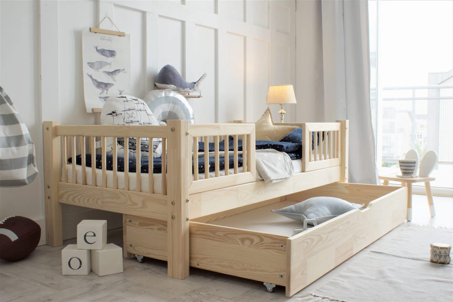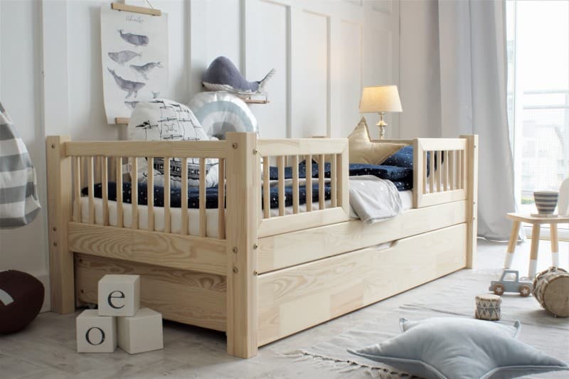 De ruime lade van het bed is perfect voor het opbergen van speelgoed of beddengoed. Optioneel kan deze lade worden omgevormd tot een tweede slaapplaats, ideaal voor gasten of onverwachte logeerpartijtjes!