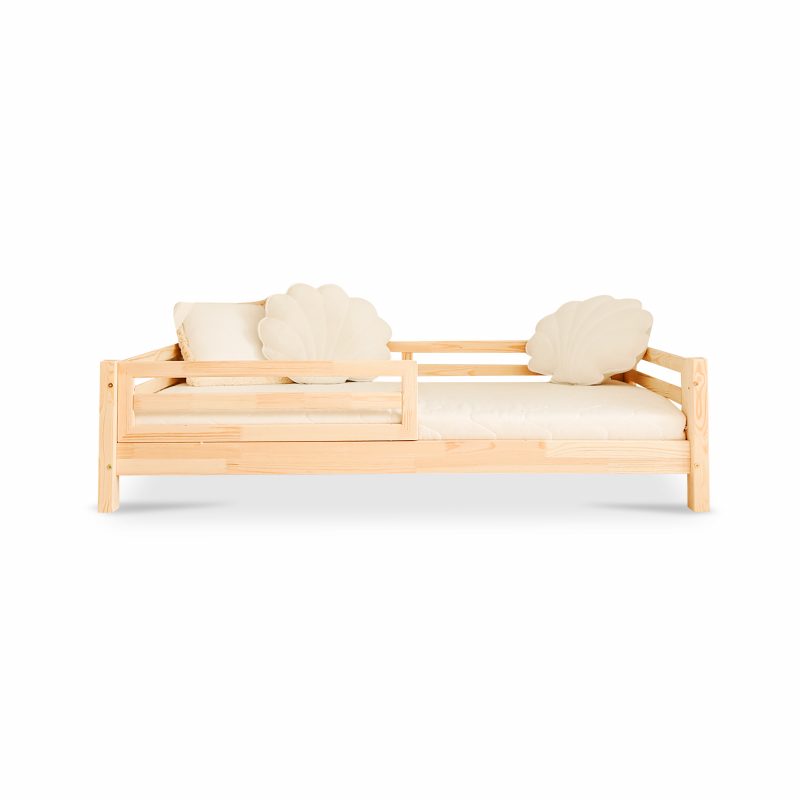 Gemaakt van massief grenenhout met FSC-certificering, is het Mila-bed een milieubewuste keuze. Het duurzame ontwerp en de verfijnde afwerking benadrukken de natuurlijke schoonheid van het hout, waardoor het moeiteloos in elke kinderkamer past. Een bed dat is ontworpen om lang mee te gaan en de dromen van je kind met stijl en rust te begeleiden.