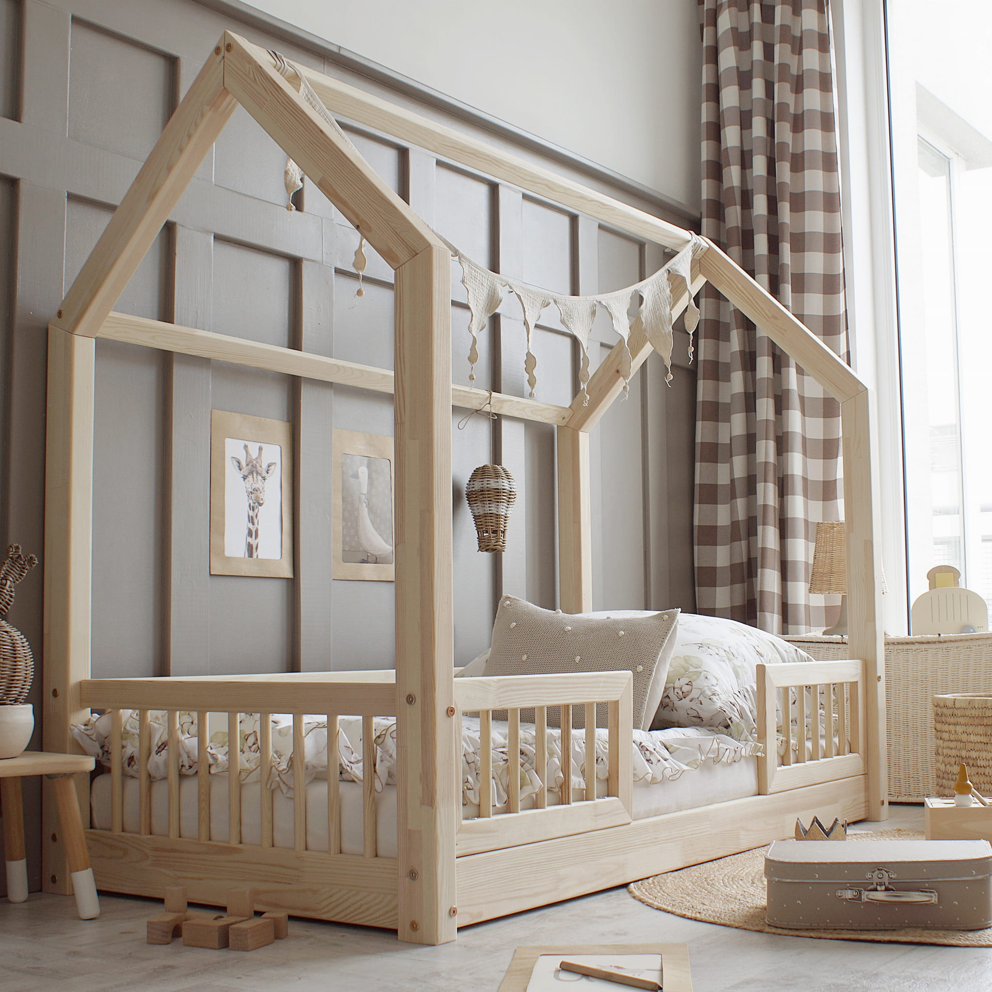 Het Stockholm bedhuisje is niet zomaar een bed; het is een echt cocon. Perfect voor de overgang van wieg naar klassiek bed, creëert het een speciale slaapplek die de positieve associatie tussen rust en welzijn versterkt.