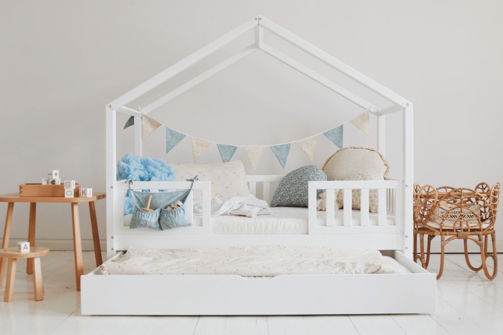 Om een gezonde omgeving voor kinderen te garanderen, gebruikt Petite Maisonnette natuurlijk hout en geurloze verf op waterbasis bij de productie van haar bedden. Deze aanpak elimineert de chemische dampen die vaak geassocieerd worden met traditionele verf, en zorgt voor zuivere lucht in de slaapkamer van uw kind. Uw kind kan rustig slapen, gewiegd door de natuurlijke, geruststellende aroma’s van thuis. Deze keuze onderstreept ons streven naar duurzaamheid en respect voor het milieu, en biedt een veilige en milieuvriendelijke slaapruimte.