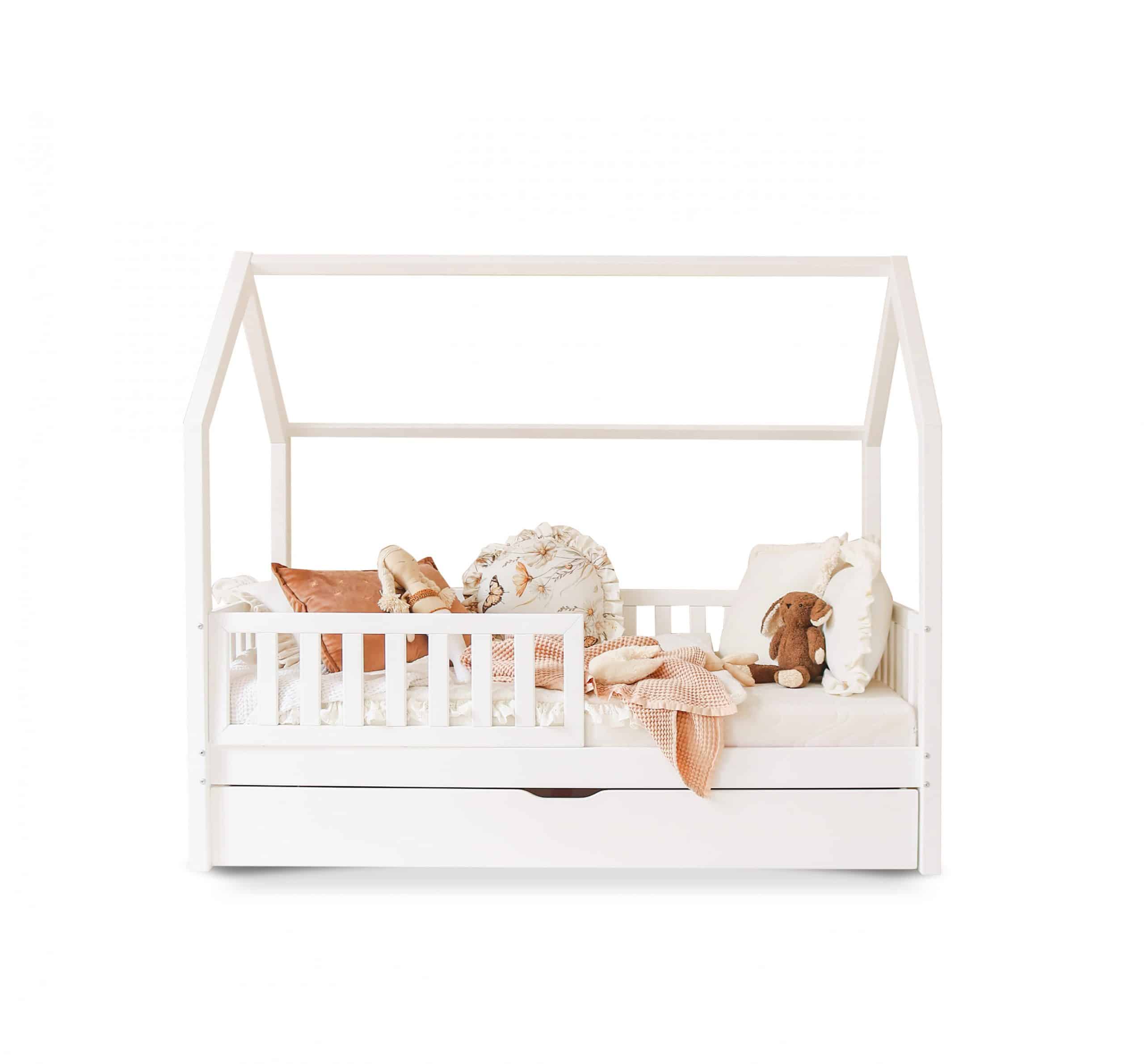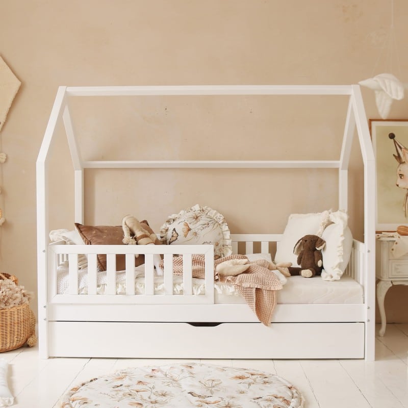 Om een gezonde omgeving voor kinderen te garanderen, gebruikt Petite Maisonnette natuurlijk hout en geurloze verf op waterbasis bij de productie van haar bedden. Deze aanpak elimineert de chemische dampen die vaak geassocieerd worden met traditionele verf, en zorgt voor zuivere lucht in de slaapkamer van uw kind. Uw kind kan rustig slapen, gewiegd door de natuurlijke, geruststellende aroma’s van thuis. Deze keuze onderstreept ons streven naar duurzaamheid en respect voor het milieu, en biedt een veilige en milieuvriendelijke slaapruimte.