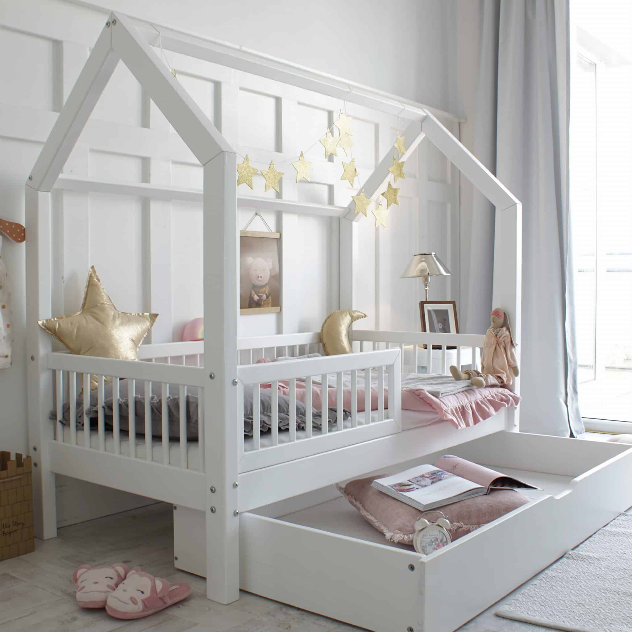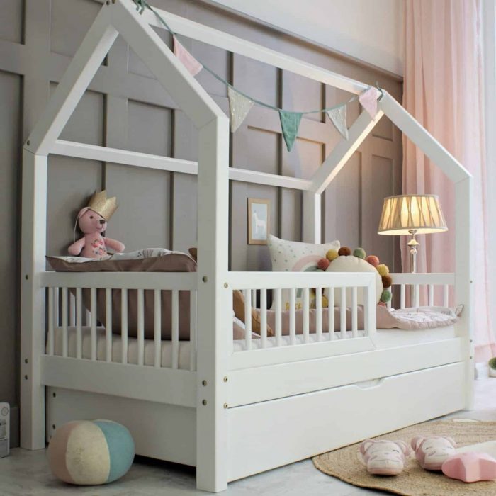 Om een gezonde omgeving voor kinderen te garanderen, gebruikt Petite Maisonnette natuurlijk hout en geurloze verf op waterbasis bij de productie van haar bedden. Deze aanpak elimineert de chemische dampen die vaak geassocieerd worden met traditionele verf, en zorgt voor zuivere lucht in de slaapkamer van uw kind. Uw kind kan rustig slapen, gewiegd door de natuurlijke, geruststellende aroma’s van thuis. Deze keuze onderstreept ons streven naar duurzaamheid en respect voor het milieu, en biedt een veilige en milieuvriendelijke slaapruimte.